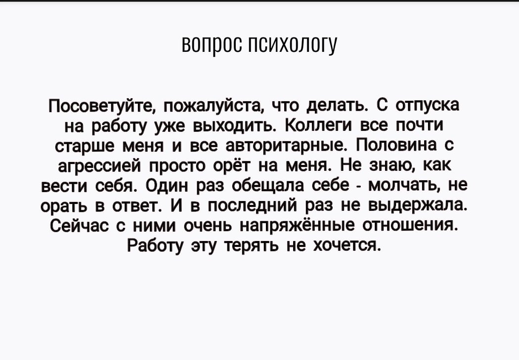 Люди, которые кричат на окружающих, часто делают это, чтобы избавиться от стресса, даже не осознавая, какой вред они наносят другим. Их безответственность и уверенность в безнаказанности в конечном счёте становятся трудно переносимыми для большинства работников. Порой единственным вариантом кажется молчание и терпение, но такое поведение чревато развитием психосоматических заболеваний, включая серьезные, как аутоиммунные нарушения и онкологию.