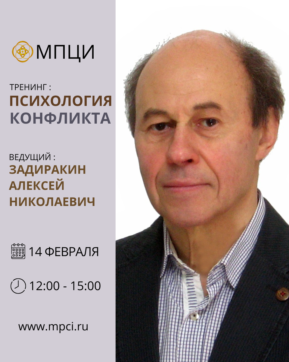 С 14 февраля 2026 года в Москве пройдет уникальный тренинг «Психология конфликта», который организует опытный психотерапевт и психолог Алексей Николаевич Задиракин с более чем 30-летним стажем.
