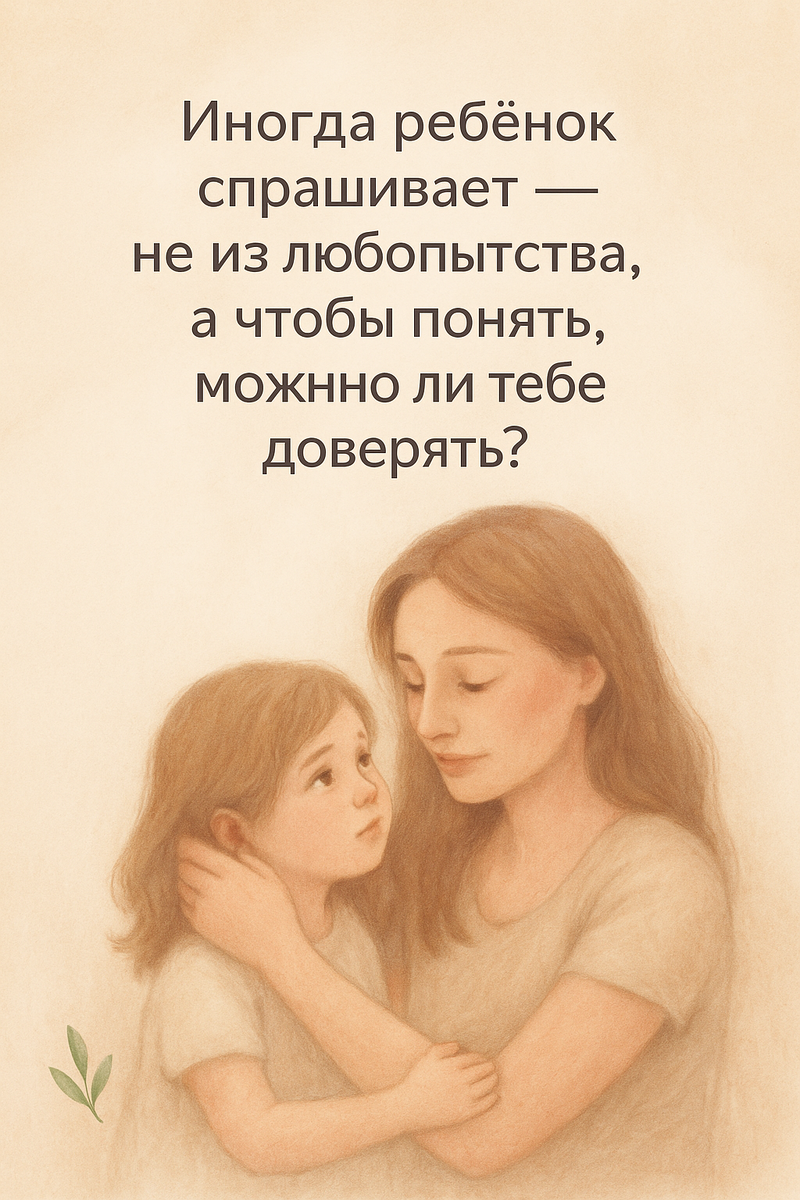 Ребёнок не задаёт вопрос из медицинского интереса — он ищет эмоциональную связь. Его тревога заключается в том, чтобы понять: можно ли доверить родителям свои важные вопросы? Ответы на такие вопросы формируют доверие, как к себе, так и к окружающему миру.